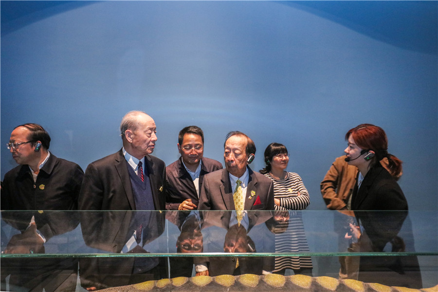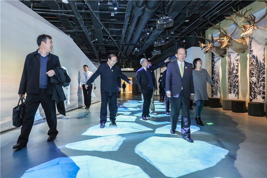 在参观长江文明馆走进自然厅时,郑炳贤先生对长江流域的鱼类不时提出问题,感叹长江流域生物种类的丰富;在武汉自然博物馆·贝林大河生命馆参观时,对展馆以世界十条大河流域为展览背景这一策展思路表达了肯定,并对馆内多姿多彩的标本、新颖的展陈形式大为赞赏,还不停感叹道:“这是我见过最棒的馆之一!”