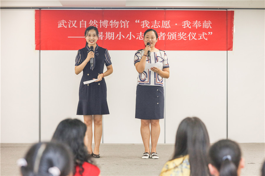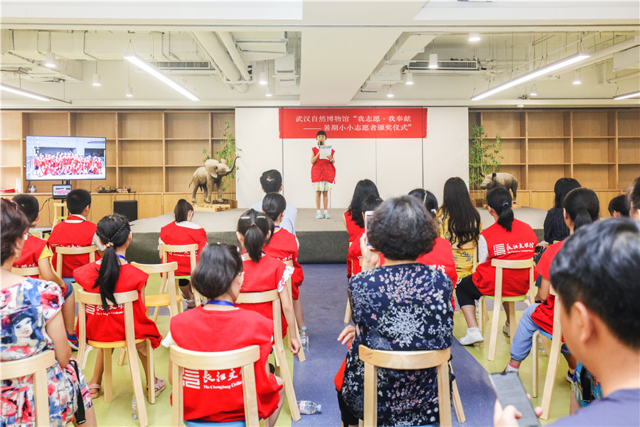 8月28日,2019年武汉自然博物馆“我志愿·我奉献”暑期小小志愿者颁奖仪式在贝林大河生命馆科普教室举行,园发集团纪委副书记、长江文明馆经营管理有限公司董事刘琪,长江文明馆(武汉自然博物馆)馆长李安清、副馆长张肖雯出席了本次活动,并为优秀小小志愿者颁奖。