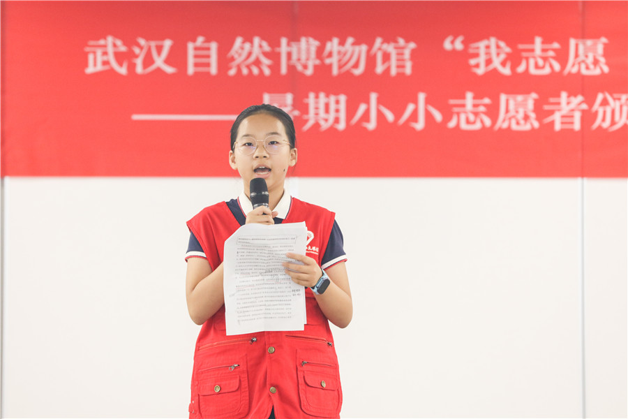 付梓墨妈妈还特别提到:孩子站完最后一班岗,在回家的路上聊天的时候说,“我觉得志愿者这个角色就是要对自己严格,对别人宽容,对工作热情,对言行规范,还有,再就是希望我能连任啊……寒假我还要来武汉自然博物馆当小小志愿者讲解员啊。”