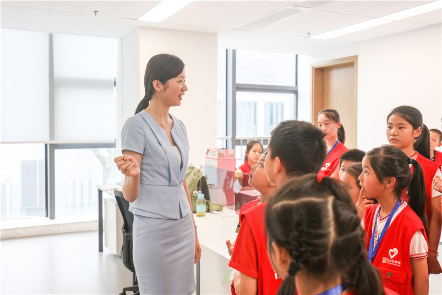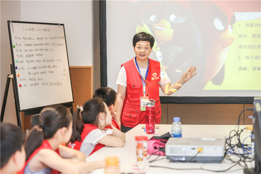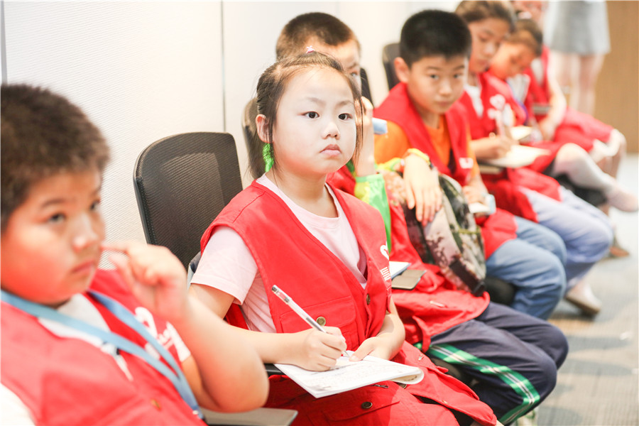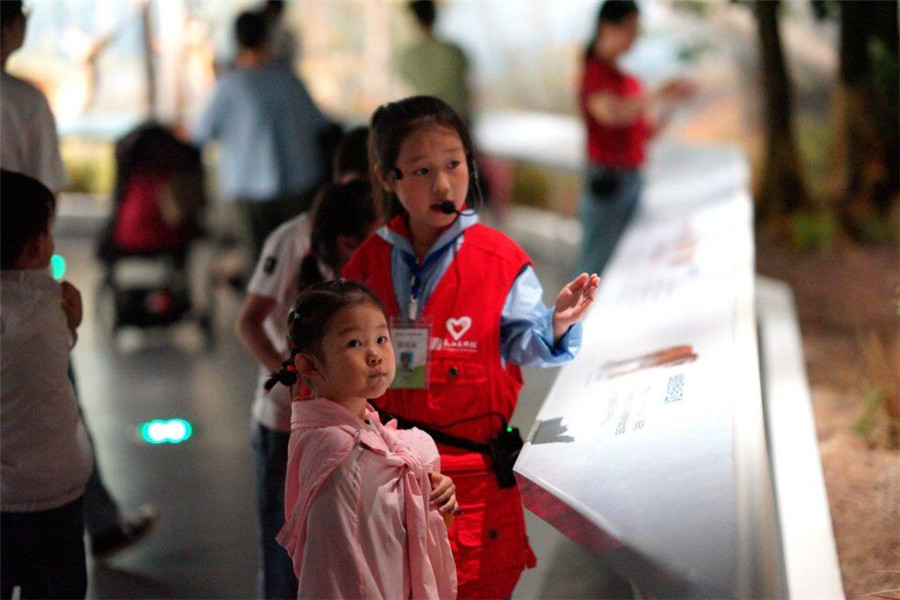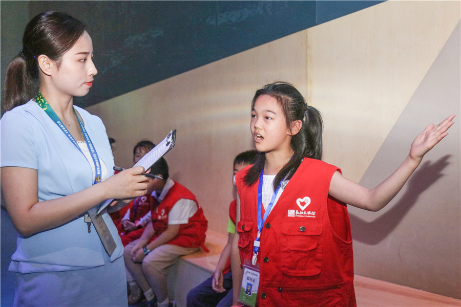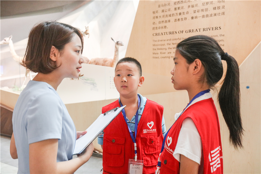 小小志愿者代表黄子荠:“志愿者讲解体现了志愿者团队的合作,每个小小志愿者负责一条河流的讲解,在两条河流交界处进行交接,使观众能完整地参观学习。我们小小志愿者在讲解员老师和志愿者老师的帮助和指导下都做得很好,锻炼和强化了我们的团队协作能力。而且,他们的志愿和敬业精神也让我有了学习的榜样。”