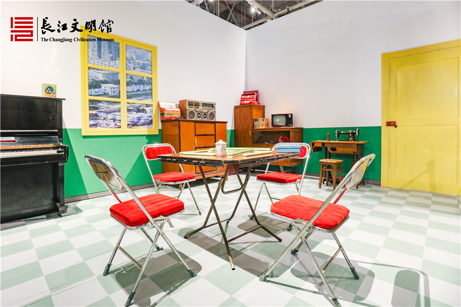 “长江人家”以沉浸式的三大场景展示了新中国70年来人居生活的变化,从“居者忧其屋”、“居者有其屋”到“居者美其屋”,一件件带有“长江”印记的物件在这里还原了时代变迁中不同年代寻常人家的生活场景,激发了不同的时代回忆以及代入感。