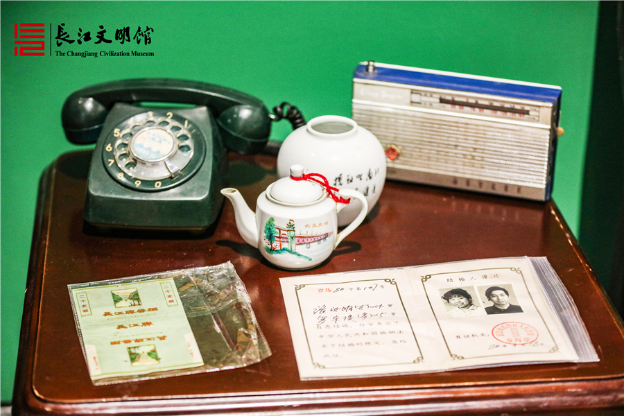 在这里,你可以看到50-60年代武汉长江大桥全景老照片,60年代的结婚证,以及嫁妆“三转一响”——自行车、手表、缝纫机和收音机。70年代红旗渠天山长江麦田画片,长江牌老钢琴,长江牌的开水瓶、印有南京长江大桥的搪瓷盘,长江牌黑白电视机、巴尔达相机、熨斗、收录机、电话机、手风琴等具有时代烙印的各式老物件,真正一秒带你回到过去的时光里。
