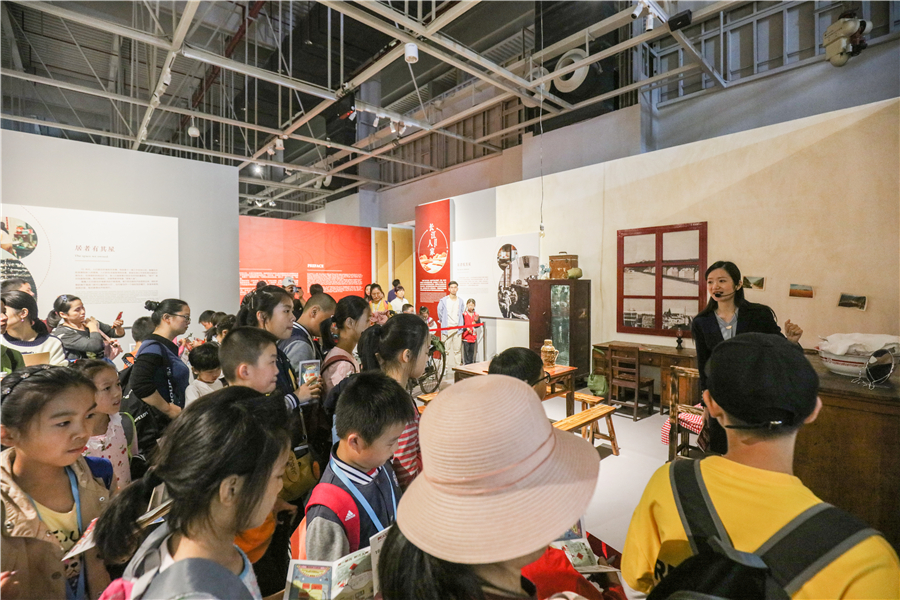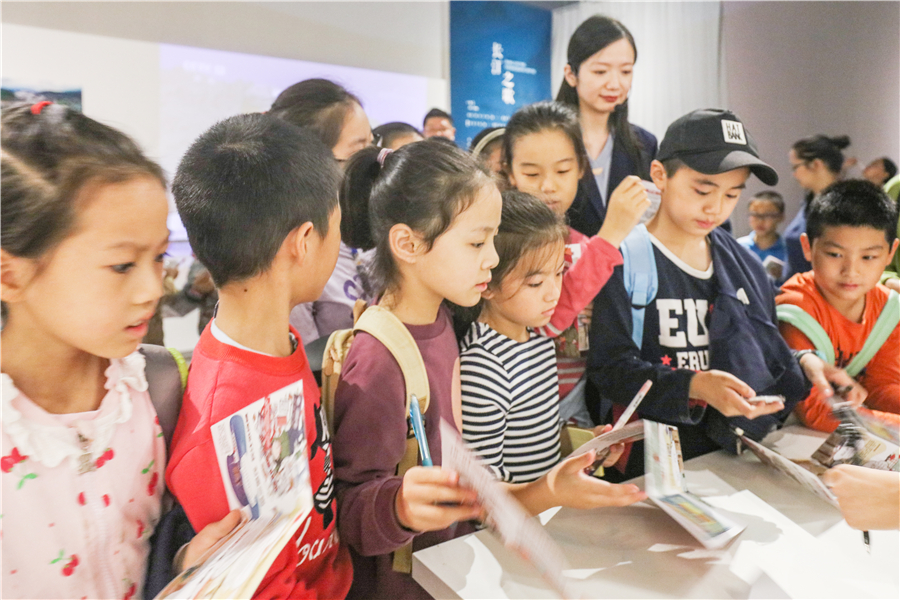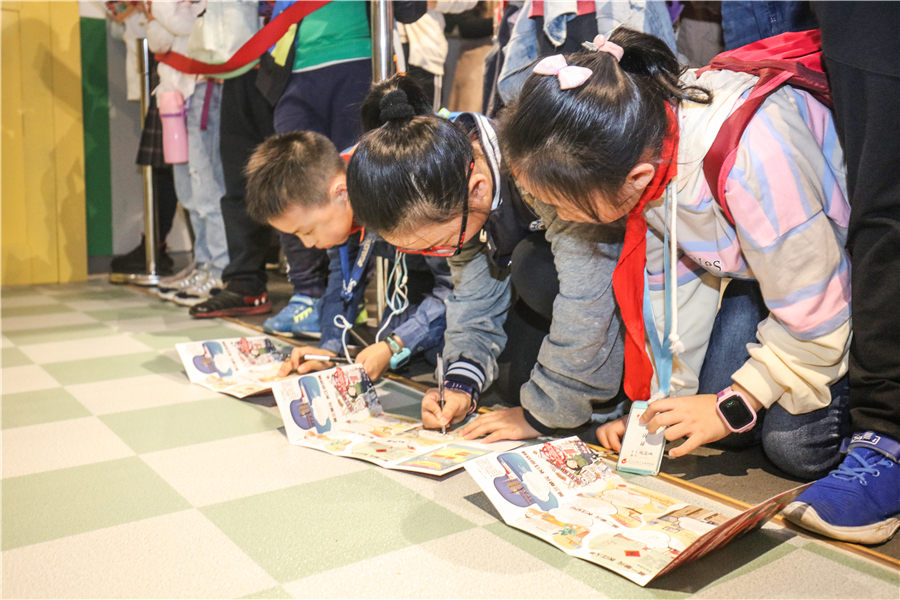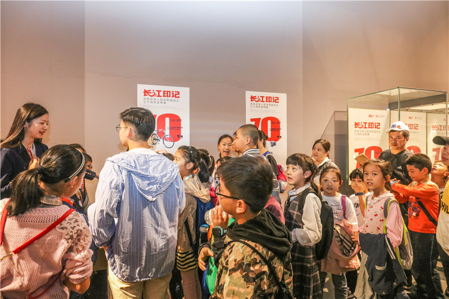 长江文明馆讲解员带领小记者们参观了临展“长江印记——庆祝中华人民共和国成立70周年实物展”,并以“寻找长江印记”为主题,介绍了具有时代印记的结婚证、嫁妆“三转一响”——自行车、手表、缝纫机和收音机、经典童年回忆里的发条跳跳蛙玩具等各式老物件,真正一秒带你回到过去的时光里。小记者们一边听讲,一边仔细记录,成功到长江杂货铺领取了精美小礼品。