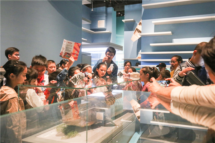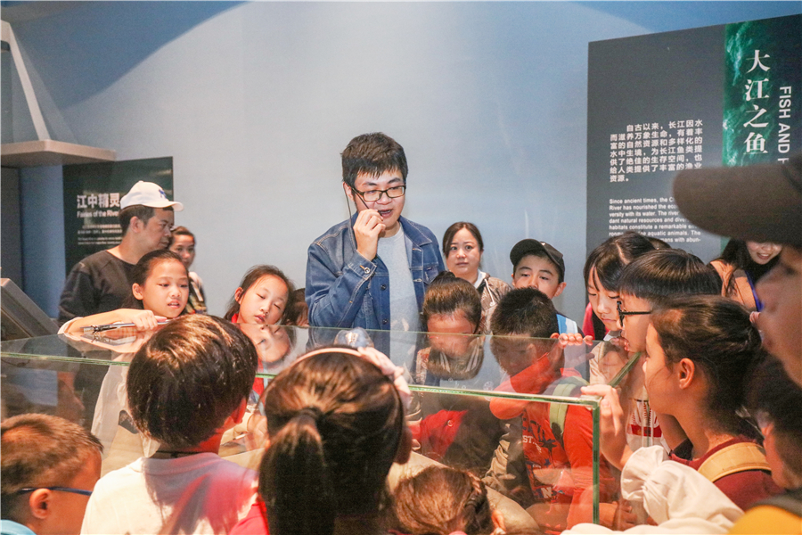 参观完临展,小记者们紧跟着科普老师的步伐,来到长江文明馆走进自然厅观看军运会吉祥物“兵兵”的真身——中华鲟,通过观察珍贵的标本,了解中华鲟的生活习性。此外,小记者们还在科普老师的带领下,开展了小小军运会大比拼,让我们看看他们在赛场上的英姿吧。