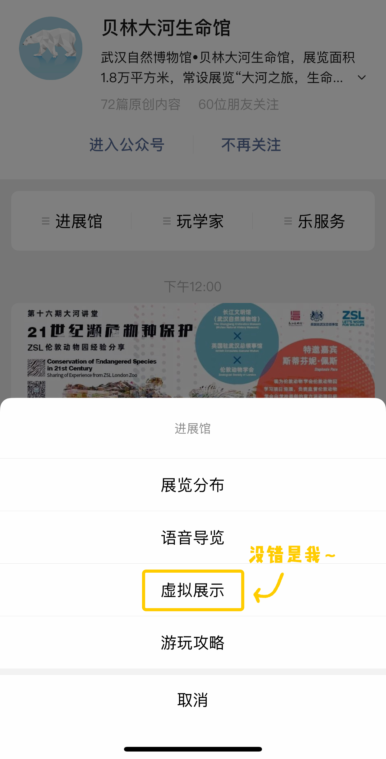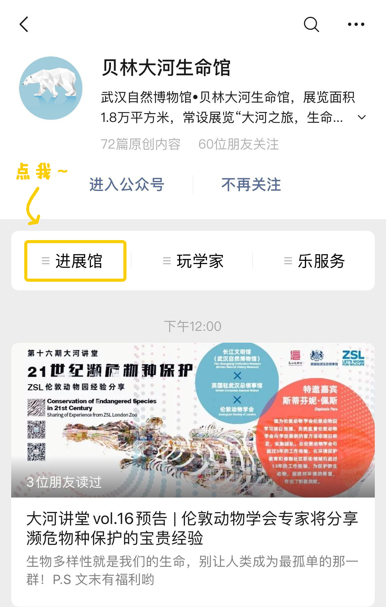 进入公众号主界面,点击进入「进展馆」
