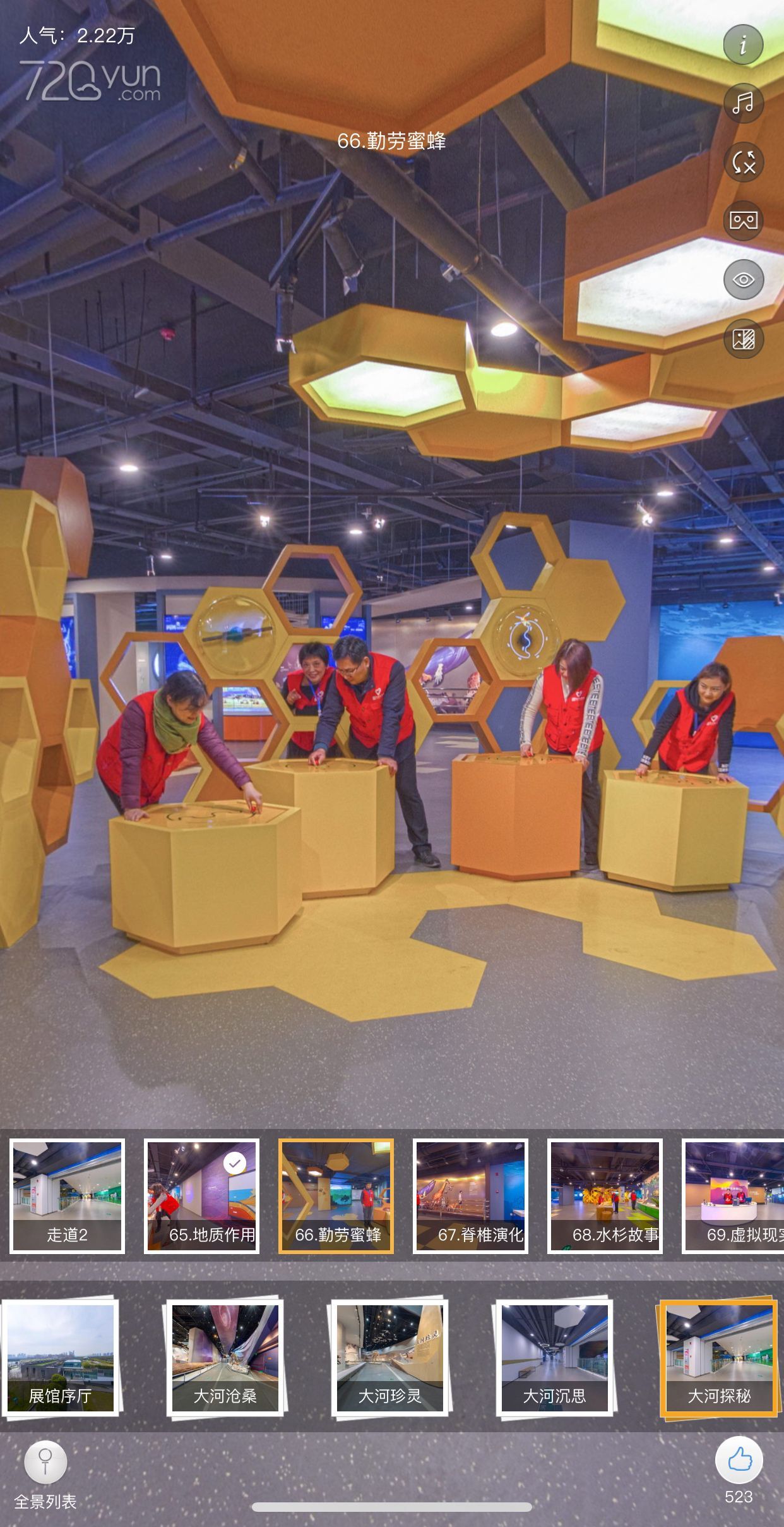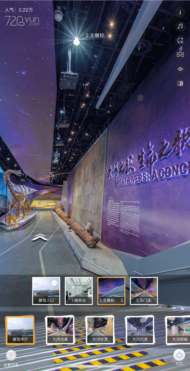 虚拟展示中遍布了许多圆形的小光标,如果你看到它们,可以用手指戳一戳,光标对应的展品就会弹出更详细的展品介绍,可以深入地了解展品故事及科普知识。