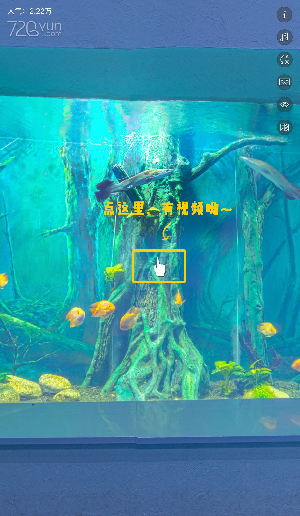 在亚马孙河展区,展示了活体养殖的亚马孙鱼类生态鱼缸——在游览虚拟展示的途中,只要看见类似这种放大镜的图标,都可以点开它们,线上感受热带珍贵鱼种在你眼前争抢食物的奇妙片段。还有更多精彩视频等你发现哦!