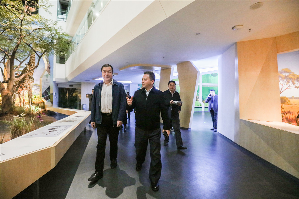 考察当日正值天清气朗,邢正军副市长对“园中馆”的优质环境称赞不已,在参观考察两馆的过程中,一边听取讲解介绍,一边不时顿足展品之前,对武汉自然博物馆的展厅特色不时点头表达赞许。
