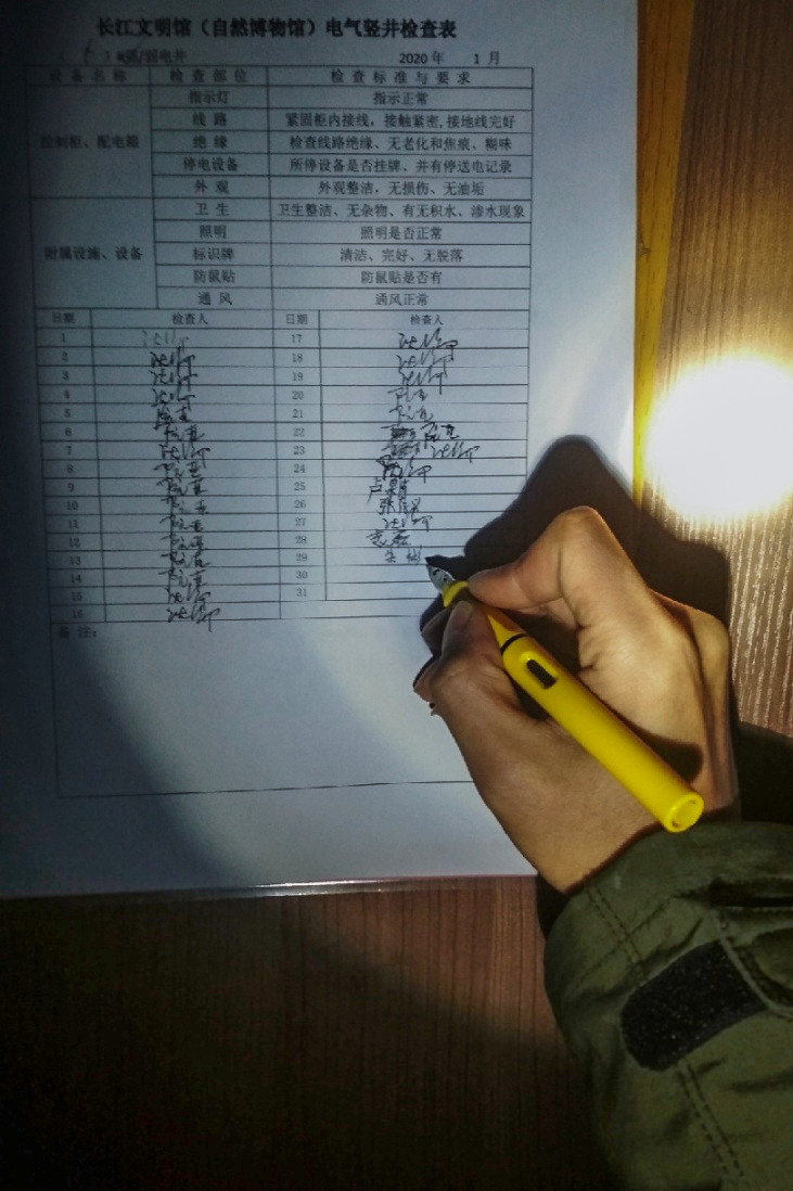 特殊时期,馆舍外侧周围的排污井,亦被纳入巡检范围,进行每日巡检,测试设备运行情况,预防污水漫出,杜绝隐患。