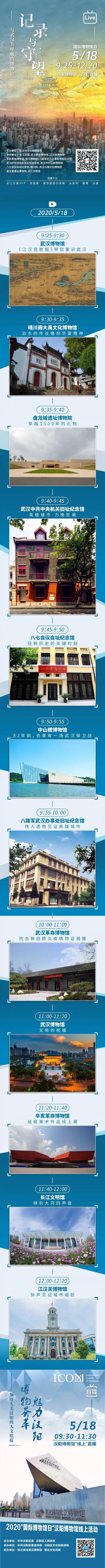 5月18日上午9时25分至12时20分,《记录与守望——与武汉共呼吸的博物馆》接力直播将在“长江日报”App直播栏目、央视频、新京报“我们视频”、“长江直播”头条号、“长江日报”官方微博、“长江日报”抖音号等多个平台同步推出。