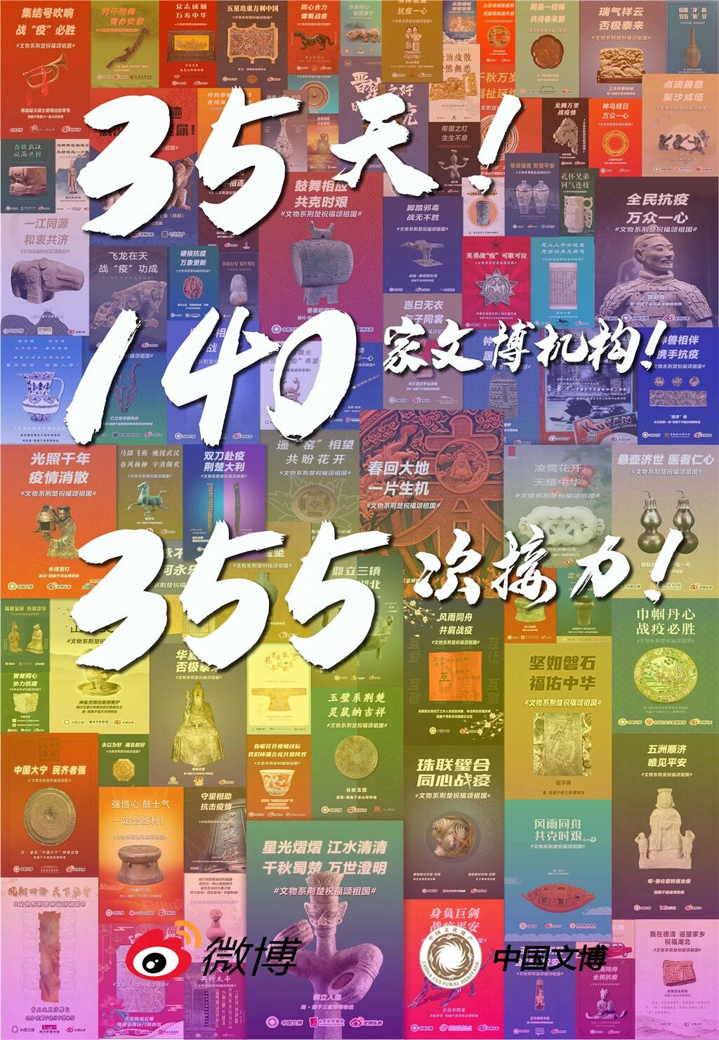 其中就有不同博物馆、文博人的一份力。这份力量在此次展览的各张海报里,在海报的每一句祝福语里。